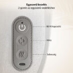 Mindössze három gombbal vezérelhető: be/ki, irányváltás és sebesség. A készülék 15 perc után automatikusan kikapcsol, hogy Ön biztonságosan pihenhessen. Az ultravékony kialakítás (csak 7 cm) lehetővé teszi, hogy bármilyen széken, kanapén vagy autóban kényelmesen használja.